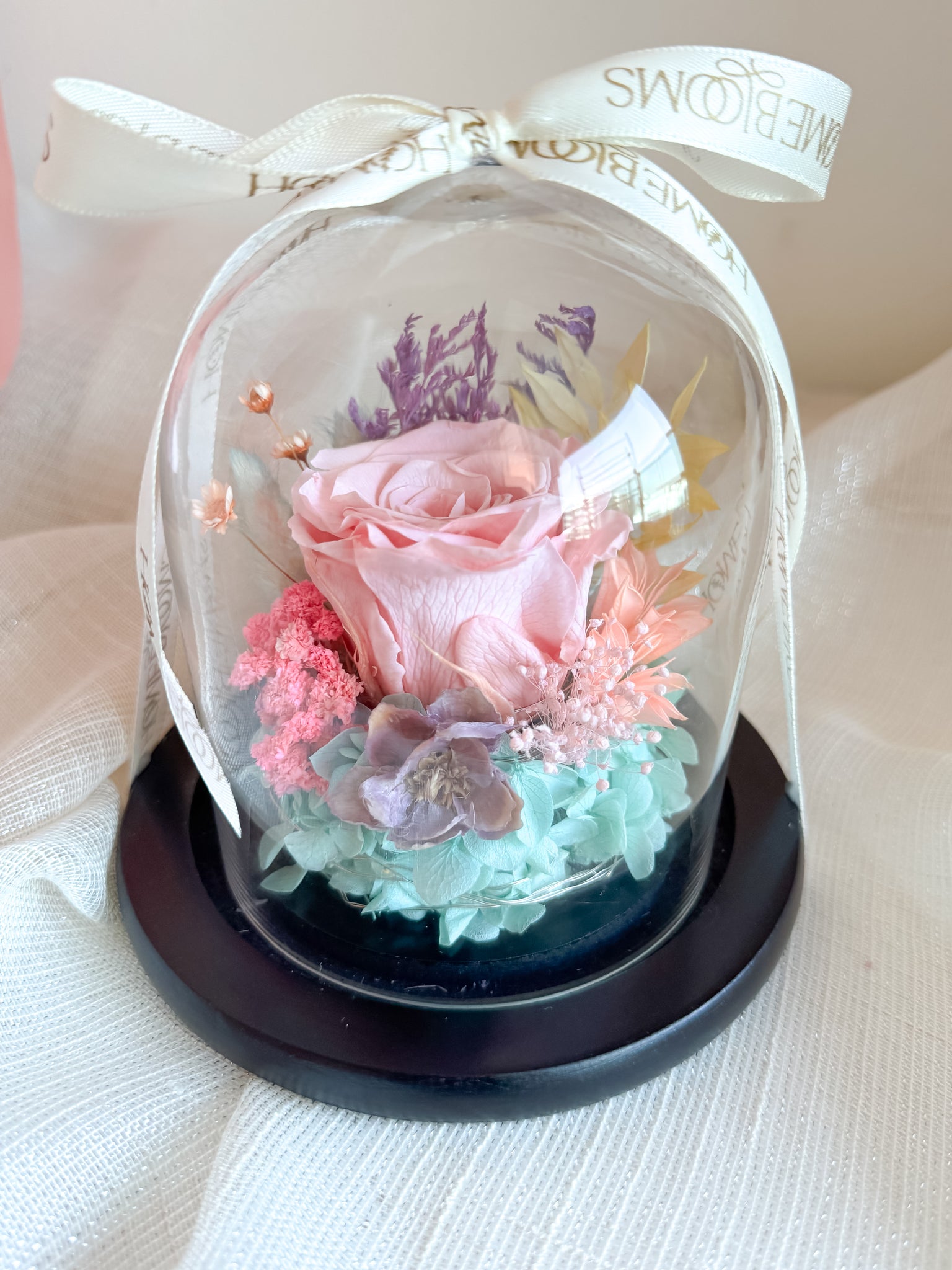 Elegant glass dome preserved flowers in UAE. Long-lasting, unique, and beautifully crafted – perfect as luxury gifts or décor. Delivery available.Our glass dome preserved flower arrangements capture everlasting beauty in a unique and luxurious way. Perfect as a centerpiece, romantic gift, or special keepsake, each dome is handcrafted with premium dried and preserved flowers. With their timeless elegance and long-lasting charm, domes make unforgettable gifts for weddings, anniversaries, and celebrations.